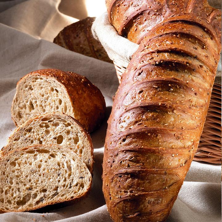 Subtil mélange de graines. Notes délicatement sucrées de maïs, mie ambrée et généreuse. Telles sont les caractéristiques des pains réalisés à partir de cette farine. Particulièrement bons au petit déjeuner, ils se conservent aussi très bien.
